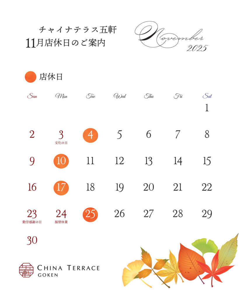 2025年11月店休日のご案内